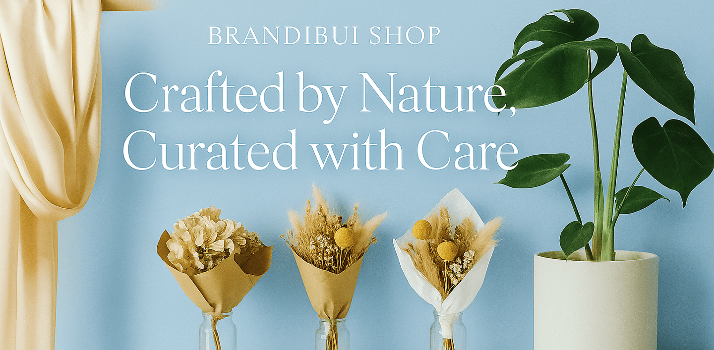 Explore a world where beauty blooms in every detail. From delicately handmade silk scarves to dried flowers and vibrant living plants, BrandiBui offers timeless pieces that celebrate natural elegance and thoughtful living. Whether you're gifting, decorating, or growing, each item is a reflection of artistry, sustainability, and soulful simplicity.