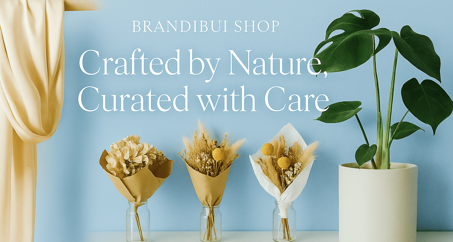 Explore a world where beauty blooms in every detail. From delicately handmade silk scarves to dried flowers and vibrant living plants, BrandiBui offers timeless pieces that celebrate natural elegance and thoughtful living. Whether you're gifting, decorating, or growing, each item is a reflection of artistry, sustainability, and soulful simplicity.